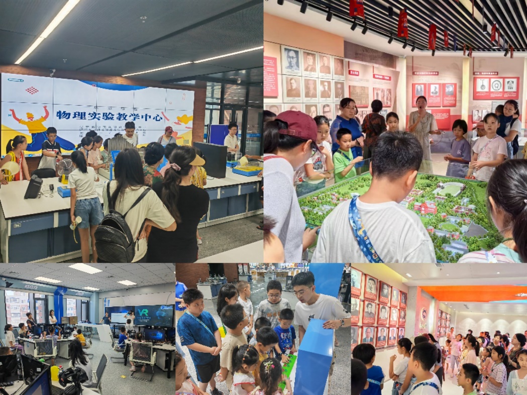 活动共包含校史馆探寻之旅和物理实验室体验之旅两个环节。在校史馆中,讲解员带领孩子们回溯学校发展历程,帮助孩子们深入了解东北大学的底蕴与文化。其后,在物理实验室体验之旅中,孩子们分为三组依次进行不同项目的体验探索,包括“解密魔术”等演示实验、“马格努斯滑翔机”等互动实验、“深海蓝鲸”等VR互动体验。孩子们在指导教师演示后,进行动手操作体验,实现了创新思维和实践能力多重提高。