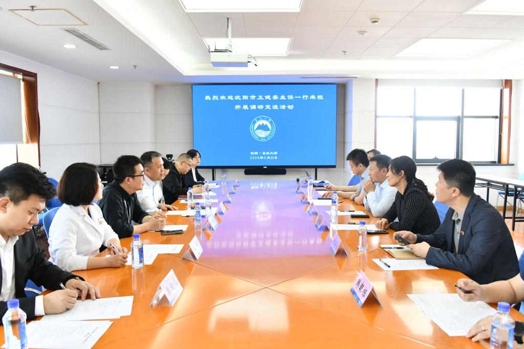 5月22日下午,沈阳市卫健委党组书记、主任梁宏军一行来校调研交流,沈阳市卫健委、沈阳市第四人民医院、沈阳市中医院、沈阳市口腔医院相关负责人和工作人员出席会议,副校长王辉主持会议,校工会、人事处、合作发展委员会、人才工作办公室、医院相关负责人参加会议。
