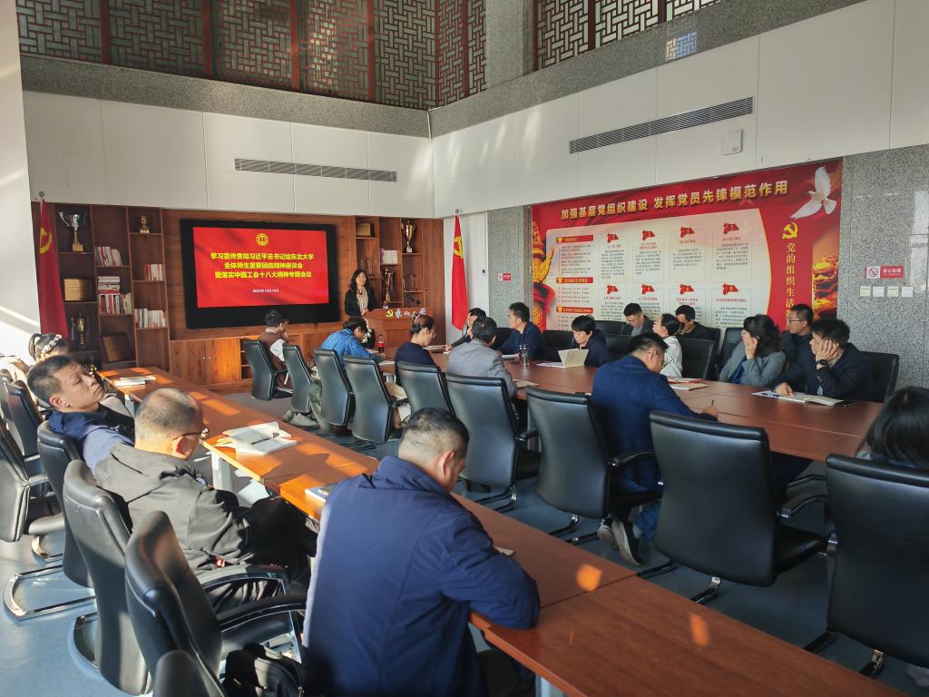 10月18日下午,校工会在综合楼1417会议室,召开学习宣传贯彻习近平总书记给东北大学全体师生重要回信精神座谈会暨落实中国工会十八大精神专题会议,校工会主席沙海影作专题宣讲,各分工会主席、副主席、劳动模范代表、校工会工作人员参加会议。会议由校工会副主席张琦主持。