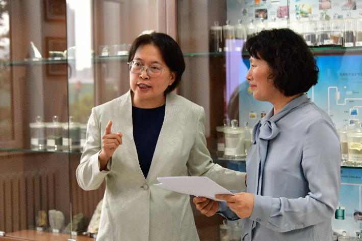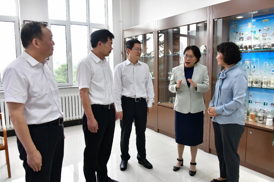 黄晓薇一行首先来到冶金学馆有色金属冶金研究所参观调研。研究所所长杨洪英教授向黄晓薇一行介绍了研究所的科研和党建工作情况。杨洪英表示,团队主持国家重点研发项目——有色行业含氰/含硫高毒危废安全处置与资源化利用技术及示范,开展“科学成因-控制技术-工程示范”全创新链的特色研究,取得了丰硕的科研成果,创造了巨大的经济效益和社会效益。研究所女性占比38%,在各项科研工作中都作出了重要贡献。2018年,有色金属冶金研究所党支部入选首批全国党建工作样板支部培育创建单位名单。