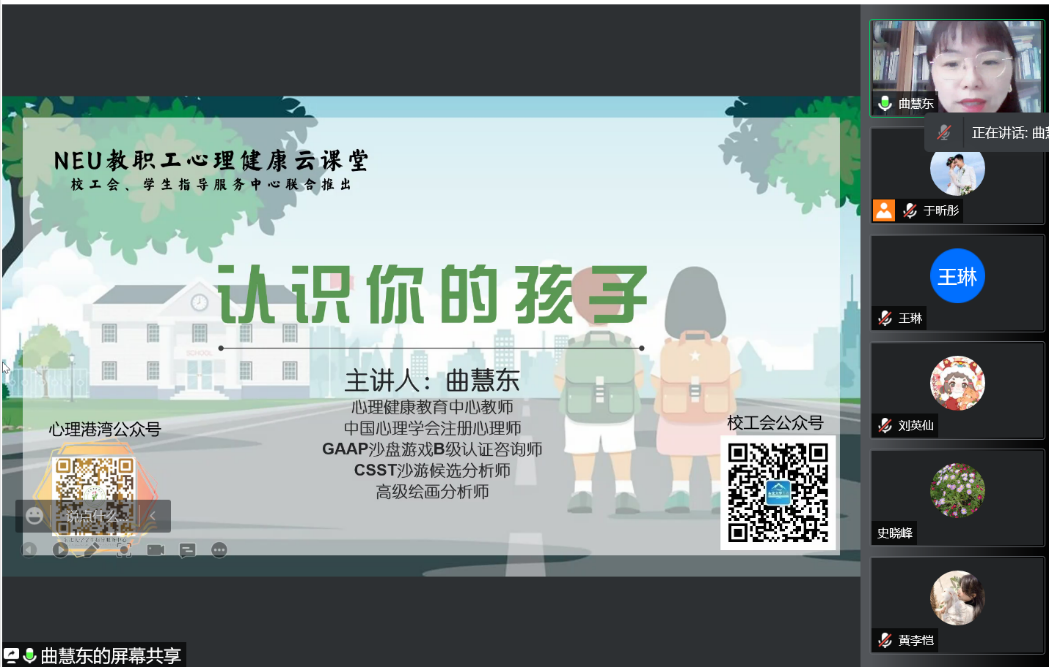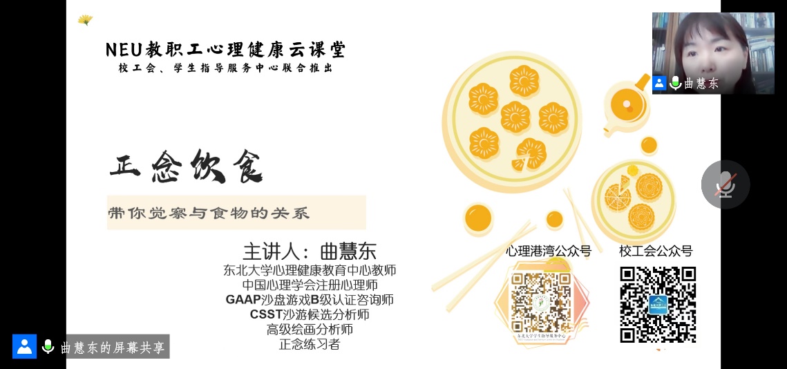 系列讲座分为两大模块,生活智慧系列和亲子教育系列,心理健康教育中心教师曲慧东通过深入浅出、生动活泼的讲解,向教职工教授了如何平衡自己与食物的关系,如何有效调节情绪、如何构建和谐的亲子关系、人际关系等方面的基本方法,从理论到实践,对于教职工正确认识心理健康问题、缓解心理压力、做好疫情防控下的自我心理调适提供有效帮助。