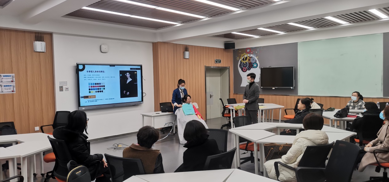 3月8日中午,校工会在南湖校区大成教学馆106智慧教室,举办“至善至美,多彩穿搭”女性穿衣搭配讲堂,活动邀请资深服装设计师冯宇围绕“女性形象设计”主题进行讲授。