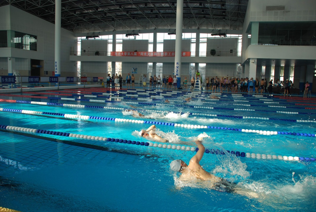 11月13日上午,由校工会主办,文法学院承办,体育部、体育场馆管理中心协办的东北大学第八届“阳光文法杯”教职工游泳比赛在学校游泳馆拉开帷幕,共计14个分工会的80余名运动员报名参赛。校工会主席沙海影、文法学院院长张雷、体育部党总支书记王明波、校工会副主席张琦出席开幕式,开幕式由文法学院党委副书记兼副院长夏风云主持。