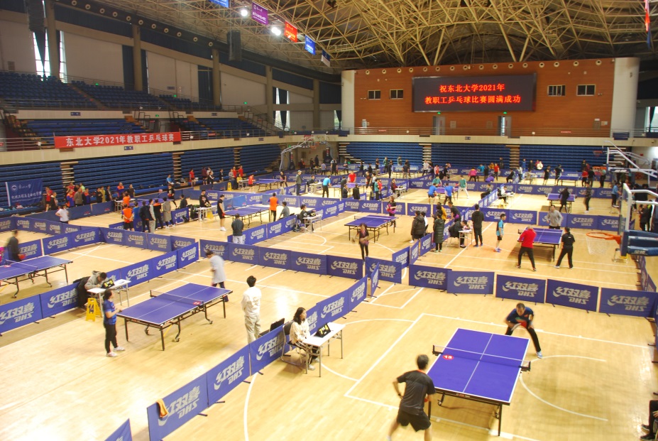 11月6日至7日,东北大学2021年教职工乒乓球比赛在刘长春体育馆顺利举办。比赛由校工会主办、体育部和体育场馆管理中心承办,比赛持续2天,共有19个分工会、200余位教职工参与了团体和单项赛事的角逐。