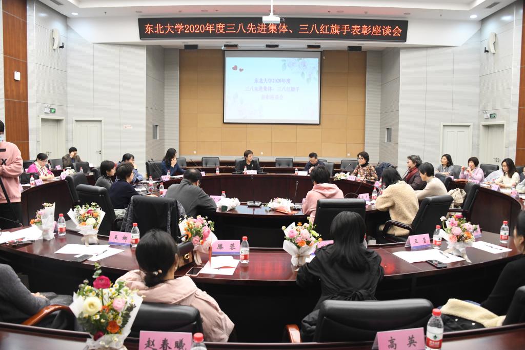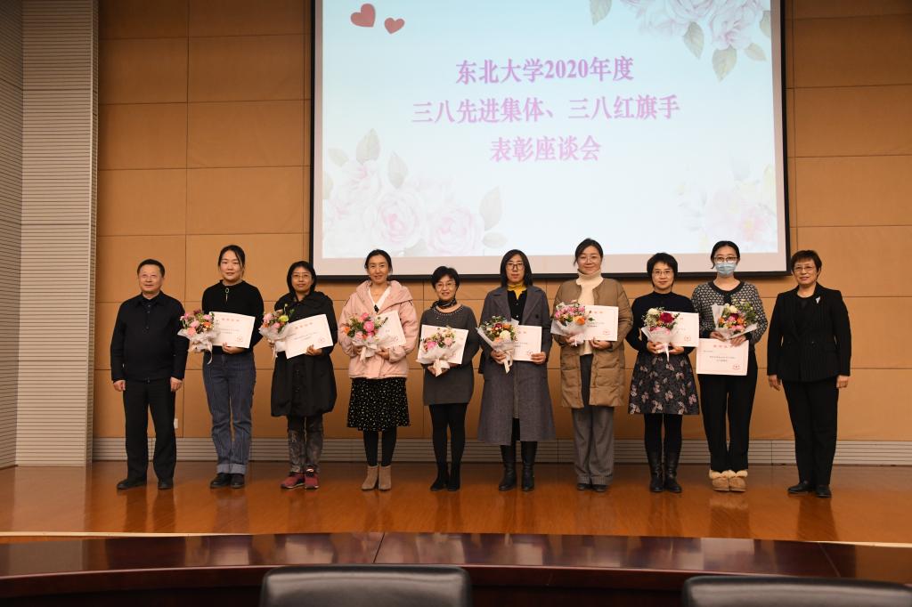 3月8日下午,校工会于南湖校区综合楼824会议室举办东北大学2020年度三八先进集体、三八红旗手表彰座谈会,校党委书记熊晓梅、党委副书记张国臣出席会议,2020年度获奖集体代表、获奖个人以及往届获奖代表出席会议。会议由工会主席沙海影主持。