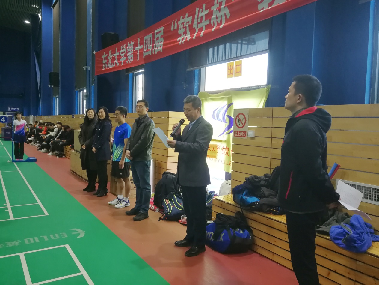 为进一步活跃教职工业余文化生活,积极倡导“健康工作、快乐生活”的理念,营造和谐的校园文化氛围,东北大学第十四届“软件杯”教职工羽毛球比赛单项赛和团体赛分别于10月10日、10月24-25日在羽乒馆隆重举行。东北大学工会主席沙海影、副主席孙东来、张琦,软件学院党委书记滕超、资源与土木工程学院党委书记艾国生出席了团体赛开幕式。