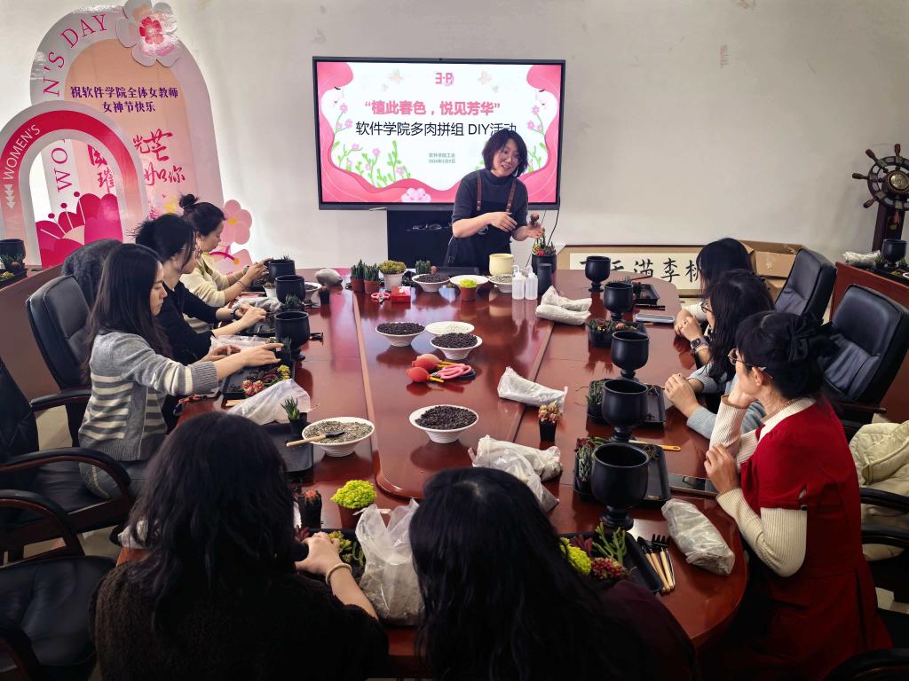 为致敬巾帼力量、传递组织关怀,丰富教职工精神文化生活,3月9日,东北大学软件学院工会在信息学馆B539室举办“植此春色,悦见芳华”多肉拼组活动,软件学院院长杨晓春、工会主席马连博出席本次活动,共计25名教职工参与到本次活动中。